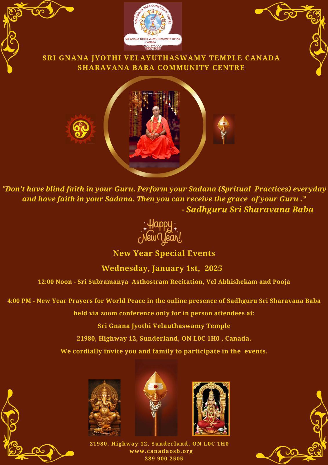Every 4th Sunday of the month, devotee also gather to say the Subramaniyam Ashtotram. This event is part of Swamiji's Sankalpa for world peace and harmony.